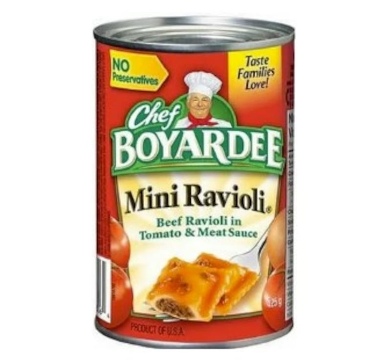 WalmartC'est difficile à croire, mais c'est en réponse à une très forte demande pour la sauce pour pâtes de Mr. Boyardee que ces produits ont été créés. Il faut dire que Mr. Boyardee était un chef très apprécié aux États-Unis. Le produit a bien évolué depuis, et on le retrouve en plusieurs déclinaisons, des raviolis aux pâtes au fromage, qui ne plairaient peut-être pas au créateur de la marque.