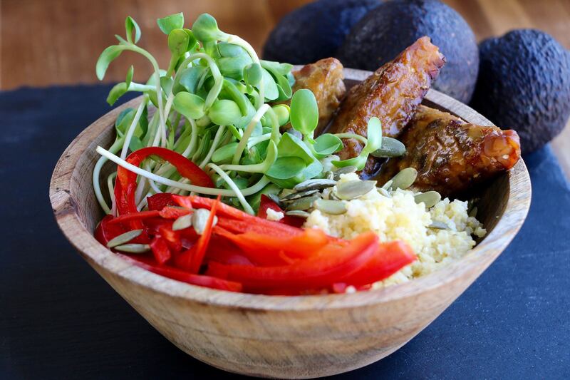 La fameuse sauce dragon est utilisée ici pour donner un punch de saveur à un bol-repas au tempeh.