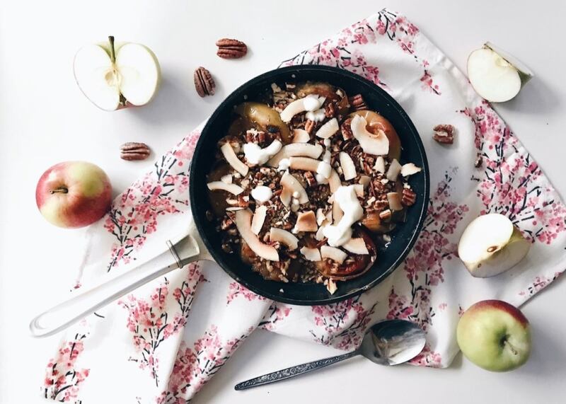 Pommes caramélisées à l'érable, noix de coco et pacanes