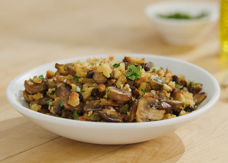 - Champignons grillés à la friteuse à air avec petite chapelure à l'ail et persil (remplacer le beurre par de l'huile d'olive ou de la margarine)