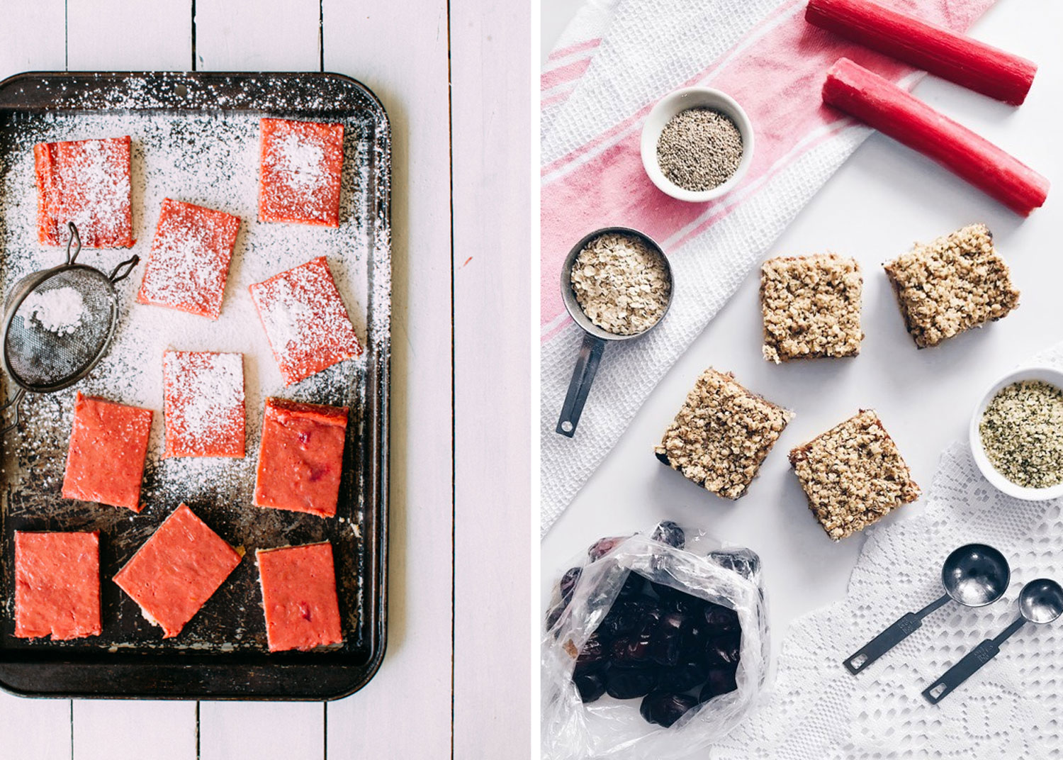 Consultez la recette de carrés végans aux dattes et à la rhubarbe.