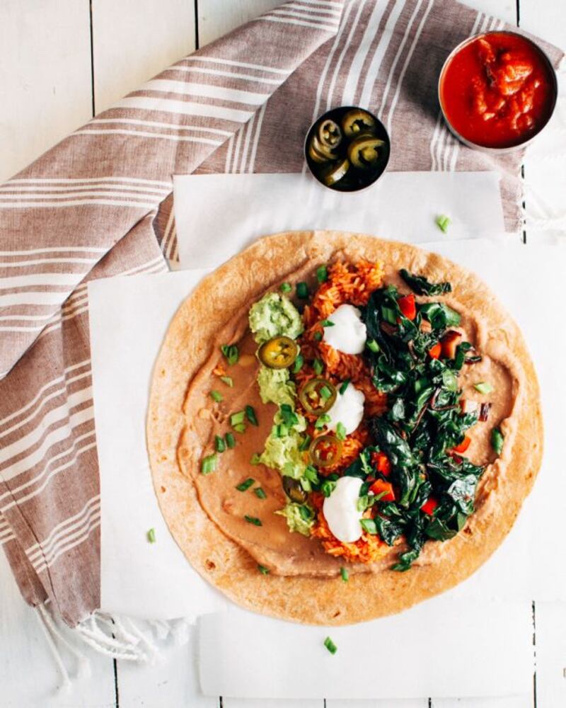 - Burritos au riz mexicain et aux haricots frits