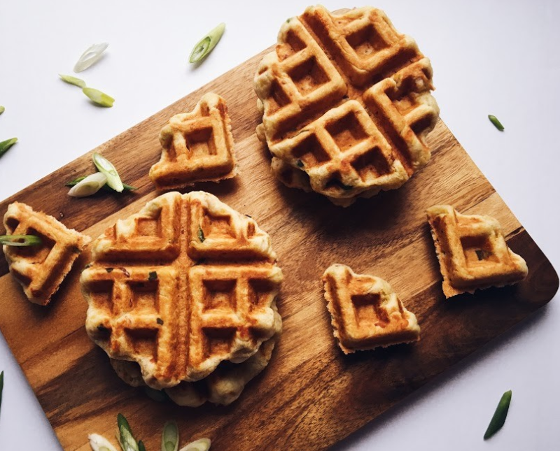 Cette recette de gaufres contient assurément 3 ingrédients dont personne ne pourrait se passer : des pommes de terre, du bacon et du fromage...quoi demander de mieux?