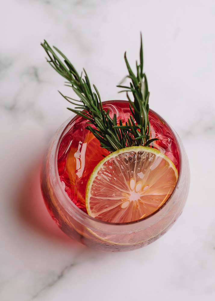 Une touche de verdure rendra votre punch plus festif! Choisissez de belles branches de romarin – qui rappelle un peu le sapin de Noël – pour décorer facilement vos verres.