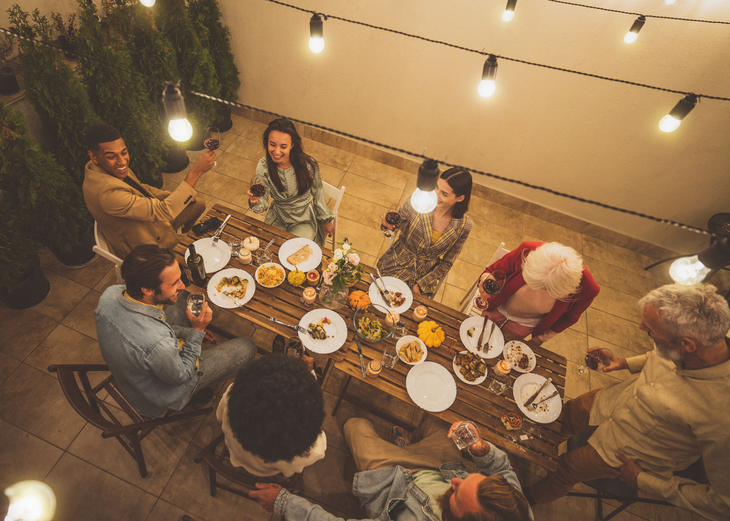 C’est plus évident si c’est un souper 3 services traditionnel, mais beaucoup moins si c’est une formule plus relax, style bières et burgers. Mais même dans ce cas, assurez-vous d’avoir de la place pour que tout le monde puisse s’asseoir. Pas assez de chaises de patio ou d’extérieur? Sortez-en de la maison. Ou soyez créatif.ive.s: ça peut être aussi le banc de votre hall d'entrée, un vieux coffre, etc. Ou même de gros coussins pour les enfants.