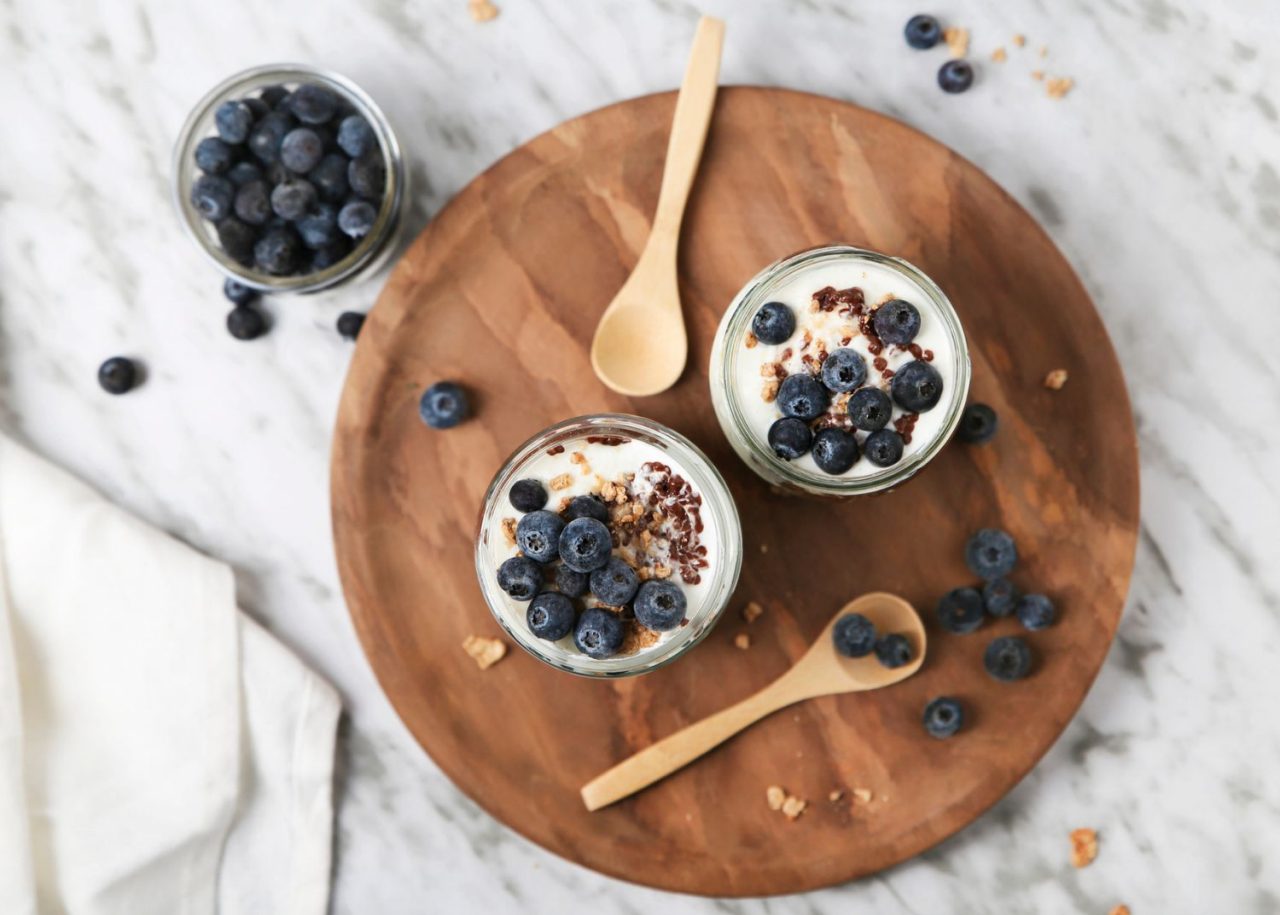 Envie d'un dessert protéiné? Pourquoi ne pas essayer le petit pot de style gâteau au fromage! Il suffit de passer le fromage cottage au malaxeur avec un peu de jus de citron et du sucre. On verse le mélange dans un petit pot et on recouvre de bleuets ou encore d'une genre de confiture maison faite avec les fruits qui trainent au congélateur.