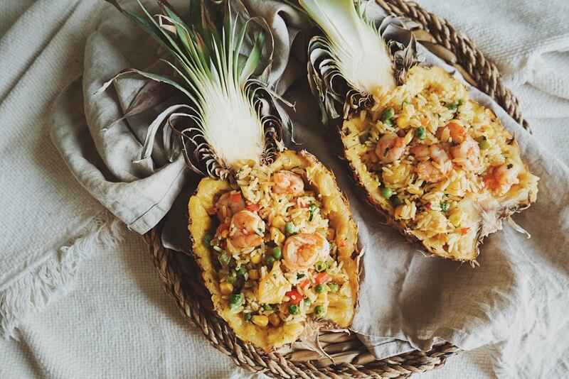 - Riz à l'ananas, aux crevettes et au safran