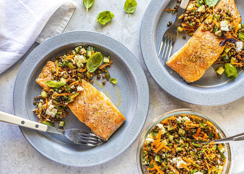 - Saumon au citron et salade de lentilles fraiche