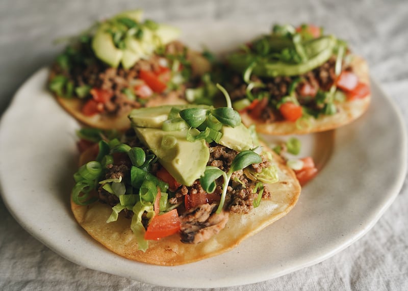 - Tostadas aux haricots et boeuf haché