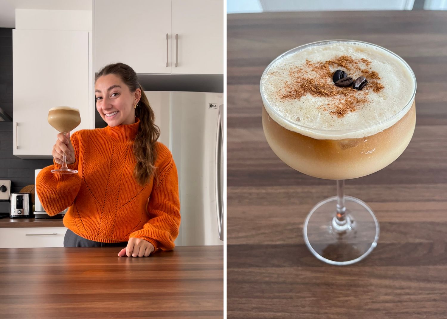 C’est en effet une recette d’Espresso Martini à la citrouille épicée que j’ai vu passer sur ma for you page et étant une grande fan de ce délicieux cocktail, je n’ai pas eu le choix d’essayer sa version automnale.