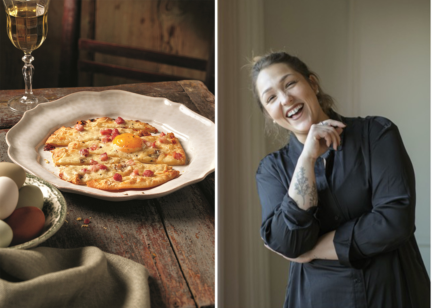 Une pizza carbonara surmontée de lardons croustillants et d'un jeune œuf coulant, c’est wow! L'idée originale se retrouve aussi dans le deuxième tome du livre de Folks and Forks.