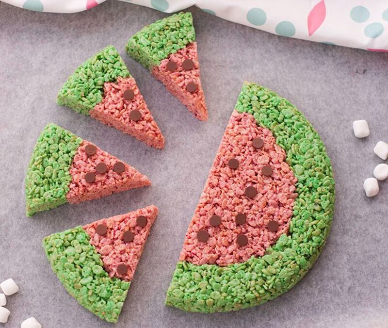 Consultez la recette complète de Rice Krispies en forme de melon d'eau!