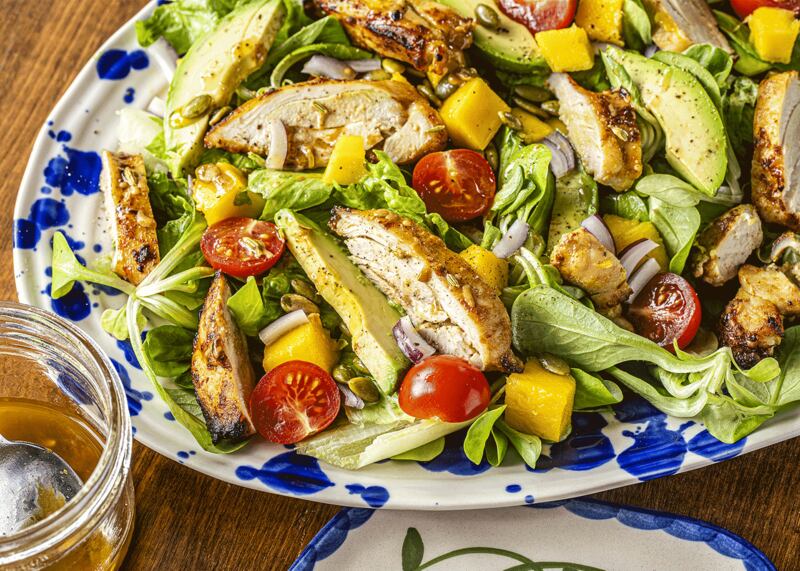 Consulter la recette complète de salade de poulet grillé, avocat et mangue.