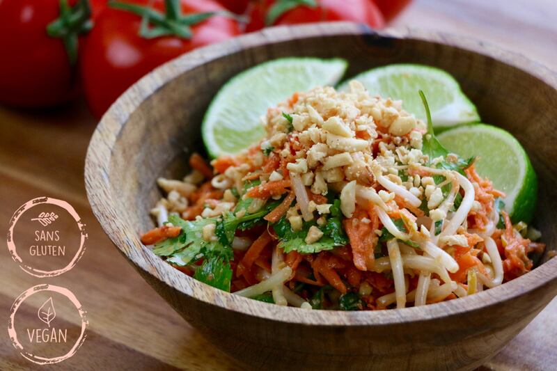 Consulter la recette complète de salade thaïe rapide avec vinaigrette coco et arachides.