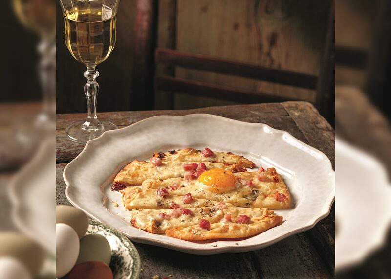 Ces pains naans carbonara au jaune d'œuf se servent tout aussi bien pour l’apéro que pour accompagner une soupe. Succès assuré!