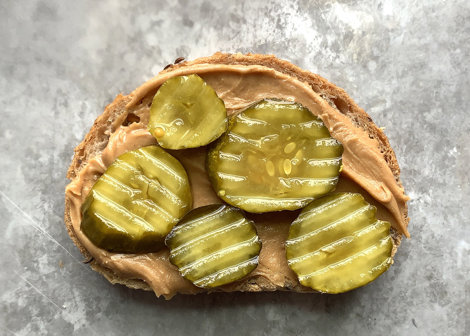 On connait tous (et qui n'aime pas!?) un bon vieux sandwich au beurre d'arachides ! Mais encore, les combinaisons possibles ici sont nombreuses, puisque le beurre d'arachides va avec presque tout. Mais avez-vous déjà essayé l'improbable duo beurre d'arachides et cornichons?