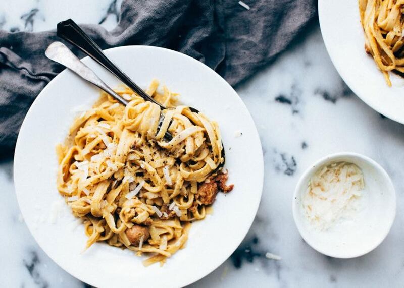 Notre version des fettucine Alfredo est riche en protéines grâce à sa sauce au tofu soyeux et fromage frais. Elle est également riche en saveurs, pour un souper décadent sans compromis!