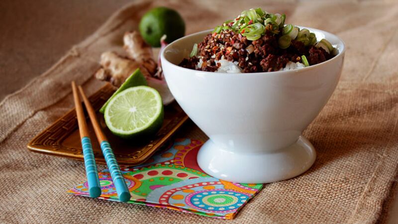 Pour apporter une touche originale à vos plats asiatiques, pensez à utiliser du bœuf haché plutôt que des lanières de bœuf. Ce repas parfumé de gingembre et rehaussé de piment fort promet de calmer votre faim jusqu'au prochain repas.