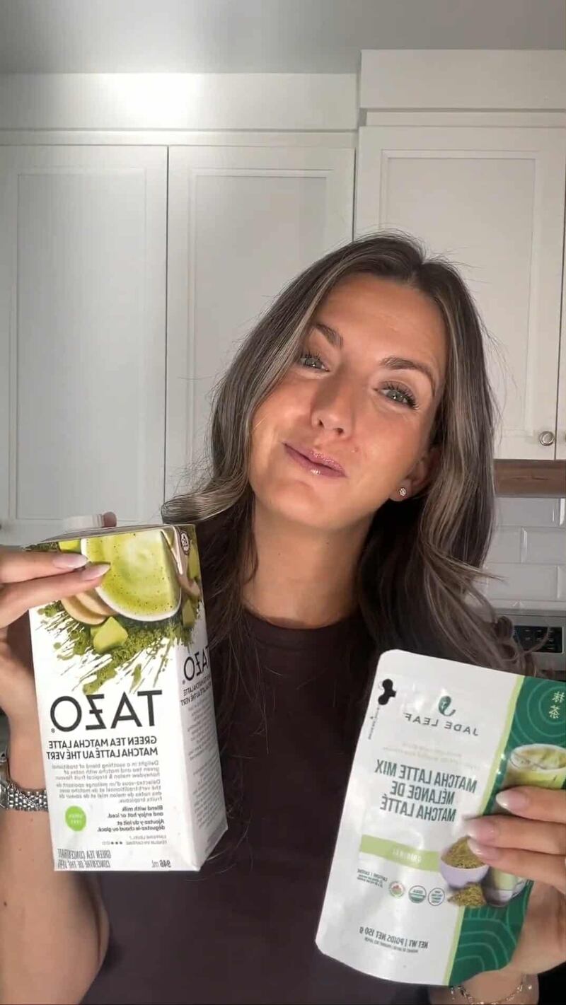 Le mélange de Jade Leaf a 9 grammes de sucre et revient à 1$ pour chaque matcha, alors que le mélange de Tazo en a 16 grammes et revient à 0,50$ pour chaque matcha.