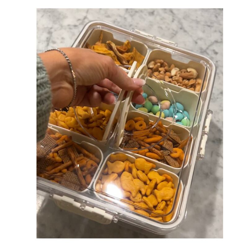 Il est aussi parfait pour garder des collations accessibles au même endroit et prêtes à consommer dans le frigo. Légumes coupés, cubes de fromage, viandes froides, fruits, noix, tout est à portée de main quand quelqu’un dans la maison crie : “J’AI FAIM!”
