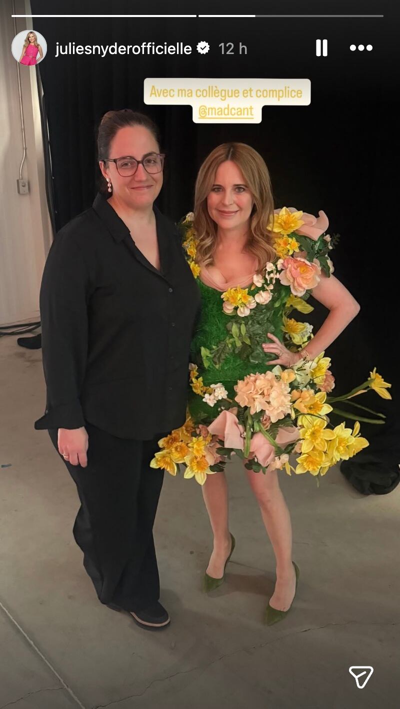 Voici quelques photos du look fleuri tridimensionnel de Julie Snyder pour le Souper de la jonquille: