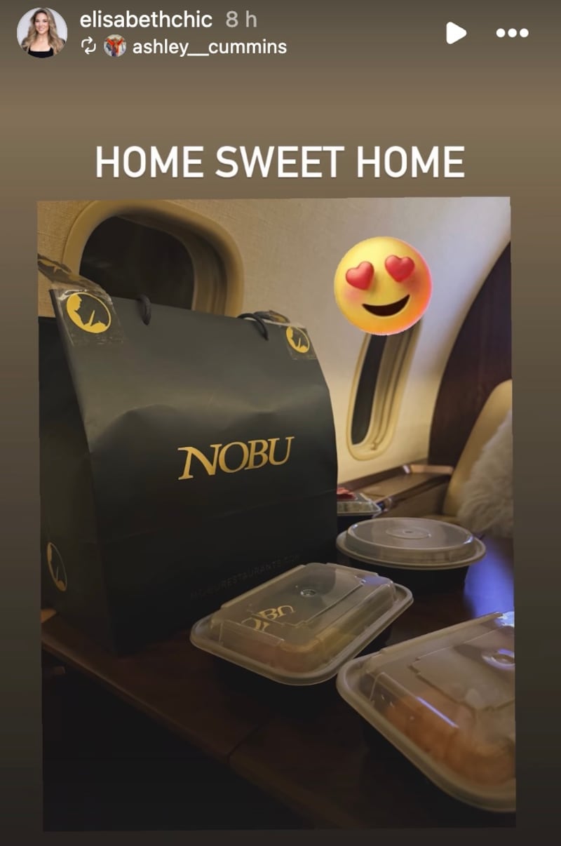 Elle a ensuite publié une photo de son souper à bord du jet privé: