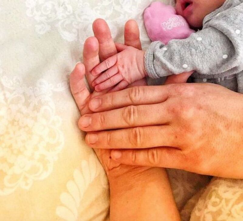 L'humoriste a annoncé la bonne nouvelle sur Instagram en dévoilant du même coup une première photo de famille. Le cliché montre la main de chacun des parents et celle de leur petit trésor réunies.