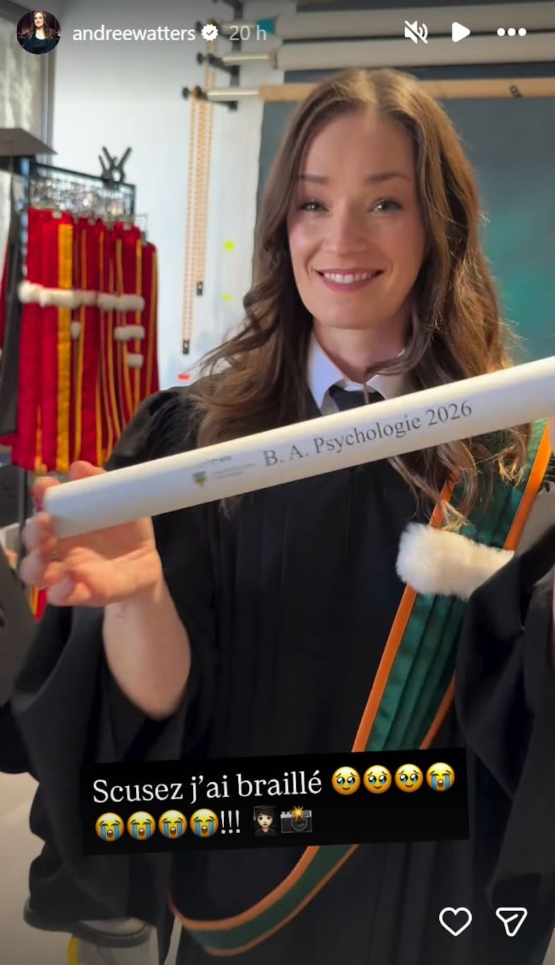 À 43 ans, Andrée Watters vient d’obtenir son baccalauréat en psychologie, concrétisant un projet amorcé il y a plus de vingt ans, bien avant que sa carrière musicale ne prenne son envol!
