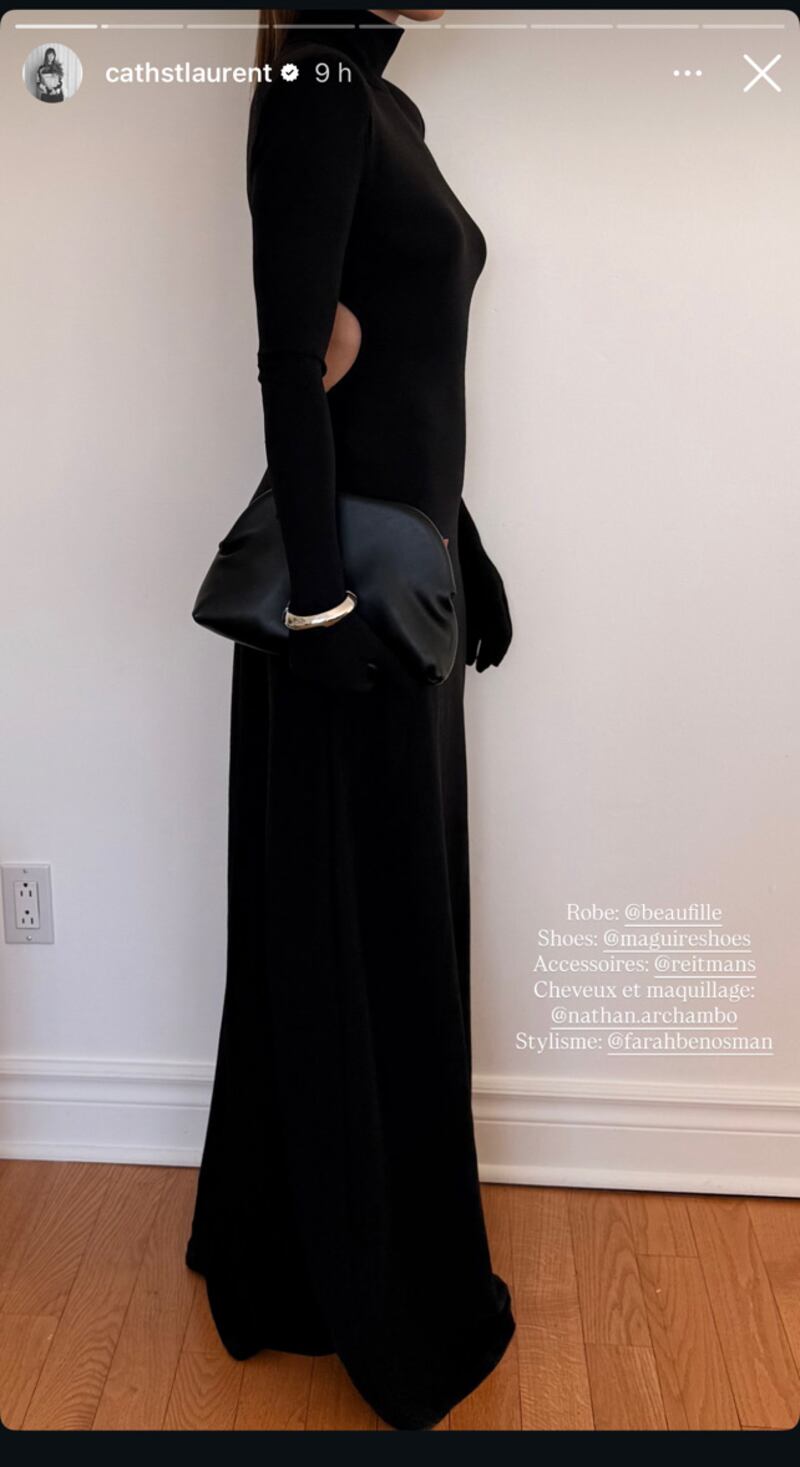 Pour fouler le tapis rouge, elle avait opté pour une robe EAMES de la marque Beaufille. Ajustée et scintillante, cette robe longue à manches longues se distingue par une découpe ouverte au dos et des gants intégrés. Un détail ingénieux: des fermetures éclair invisibles le long des manches permettent de libérer les mains au besoin, ajoutant une touche à la fois pratique et audacieuse à l’ensemble!