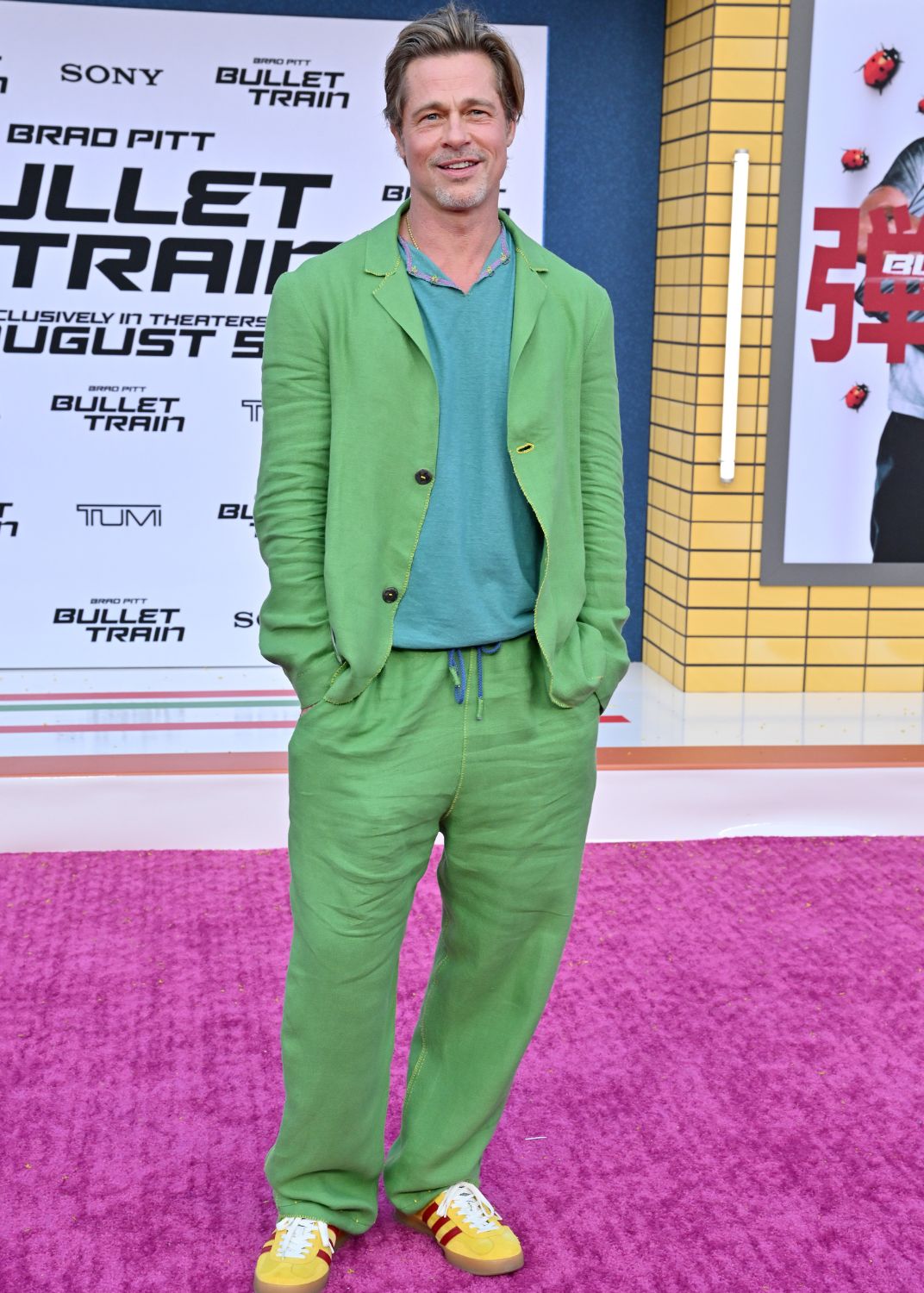 Brad Pitt continue la promotion de son nouveau film Bullet Train et fait parler pour son style audacieux!