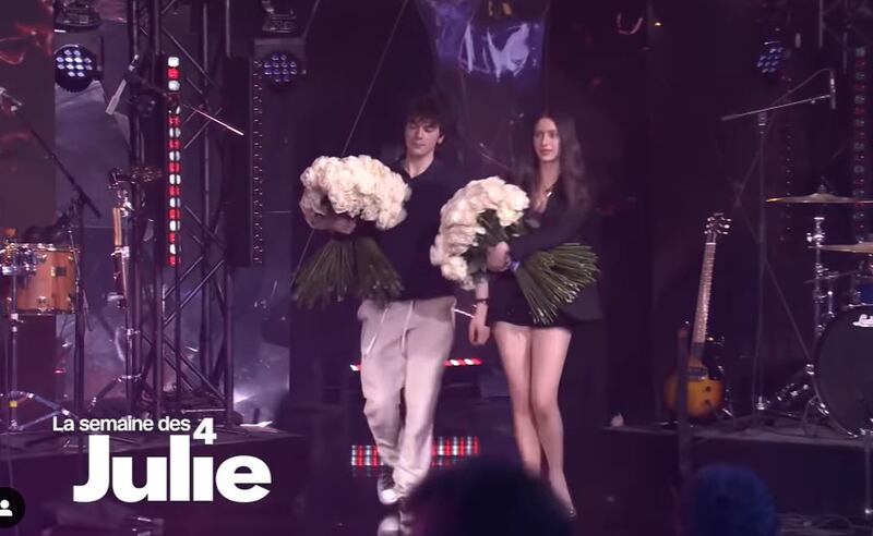 Ce dont Julie ne s'attendait probablement pas, c'est à ce que Romy et Thomas arrivent dans le studio avec deux magnifiques et ÉNORMES bouquets de roses blanches (362 roses pour être plus précis!) sur le rythme de la musique qu'ils écoutaient lorsqu'ils sont allés tous les trois en Afrique du Sud.