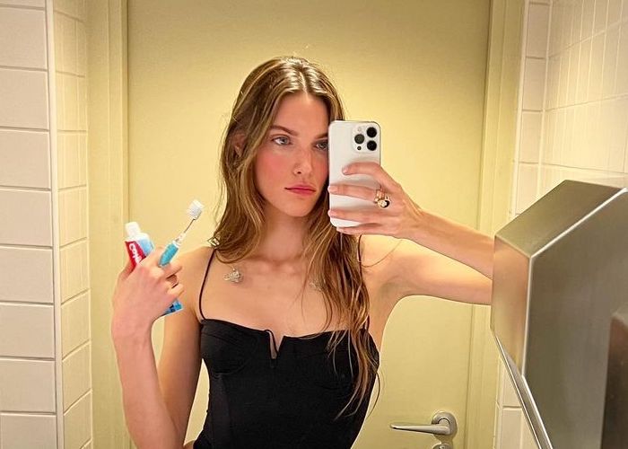 L'histoire ne dit pas si c'est son haut, son jean ou son sac à main qui soit signé J.W. Anderson mais on ADORE l'ensemble! Elle prouve que le jean à taille basse peut être très joli lorsque bien agencé.