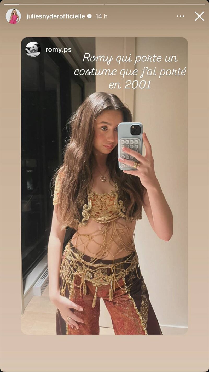 De nombreuses personnes ont célébré l’Halloween la fin de semaine dernière. C’était entre autres le cas pour la fille de Julie Snyder, Romy. La jeune femme a de la chance de pouvoir compter sur une mère qui a une quantité incroyable de costumes. Voyez lequel elle a choisi dans la collection de sa mère pour l'occasion.