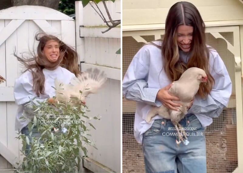 C’est son ami et coiffeur Marcus qui a partagé l’extrait la montrant en pleine séance de câlins (ratée) avec un poulet.