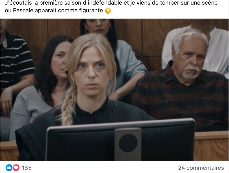 Avec quelques recherches, on constate qu’effectivement Pascale a joué une greffière dans la première saison de Indéfendable en 2022.