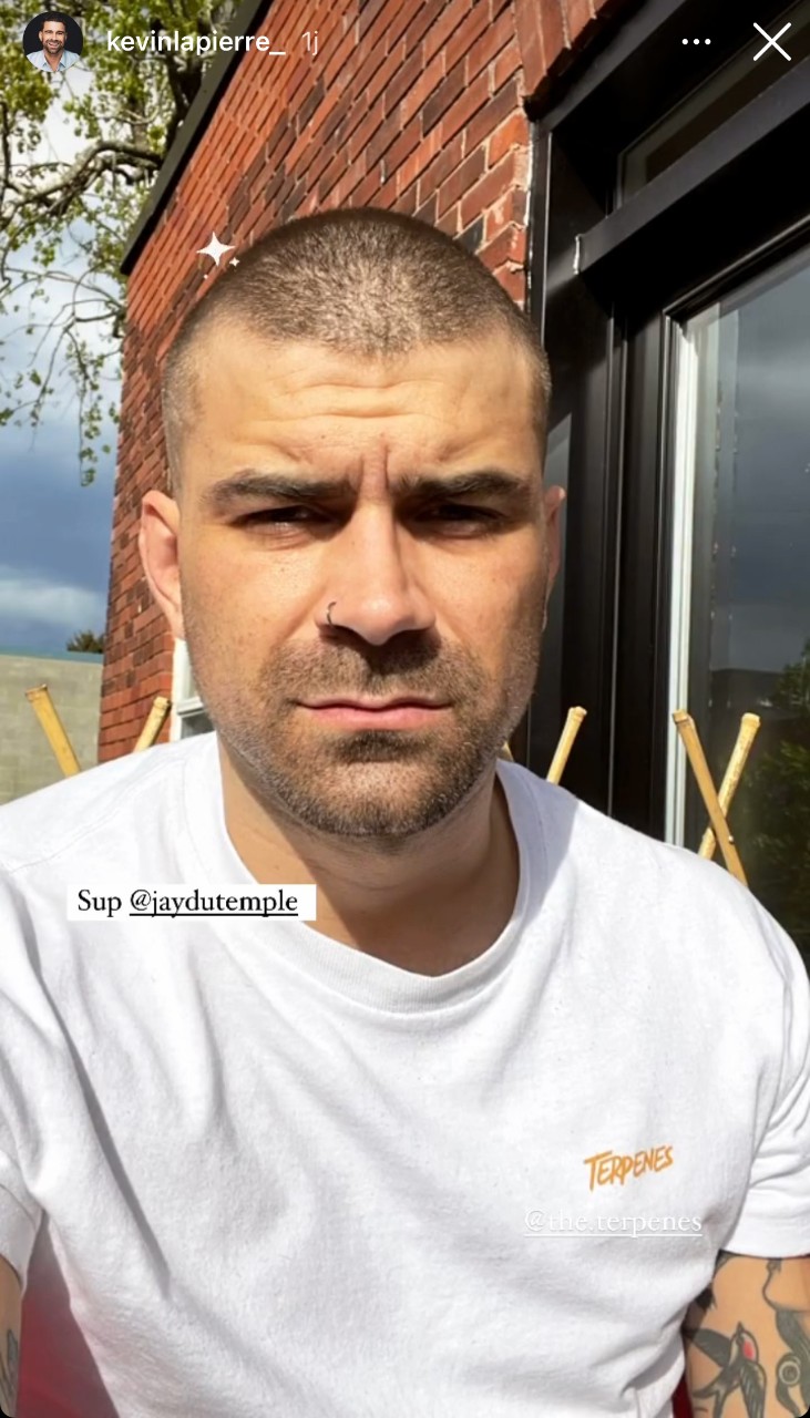 «Sup @jaydutemple», annonce-t-il tout simplement, interpellant du même coup le populaire animateur d'Occupation Double, Jay Du Temple, qui a lui aussi la tête rasée.