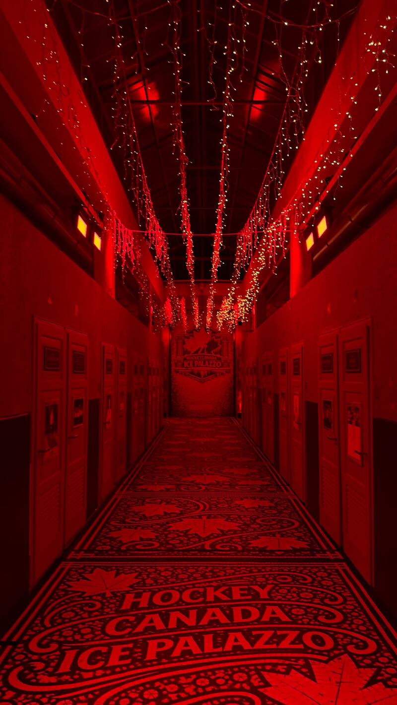 La photo partagée par Caitlin Suzuki révèle d’ailleurs un somptueux corridor illuminé de rouge, décoré de petites lumières au plafond. Le sol et le mur du fond rappellent d’anciennes mosaïques italiennes, ornées de feuilles d’érable, ajoutant une touche canadienne à ce décor luxueux.