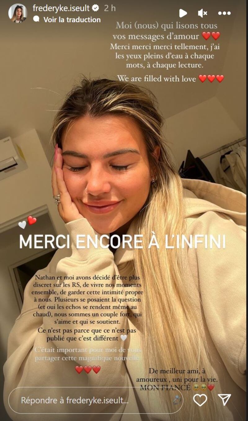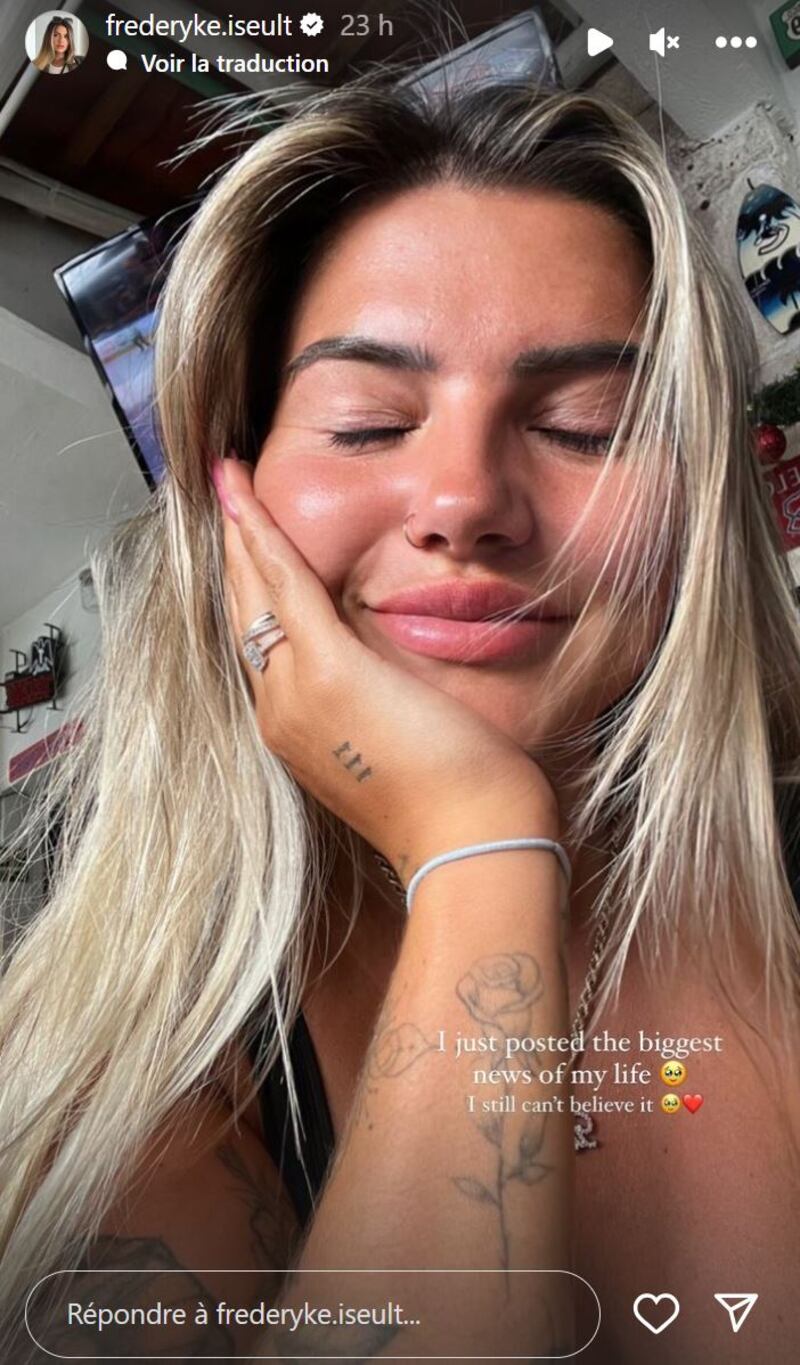 Frédéryke a d'ailleurs partagé des clichés de sa superbe bague de fiançailles, en plus de dévoiler l'adorable moment où son amoureux met son genou à terre afin de la demander en mariage.