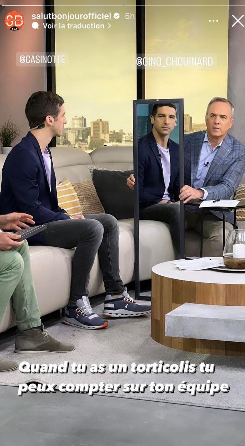 C'est alors que Chouinard est intervenu en servant de support, comme on peut le voir sur une photo publiée sur les stories Instagram de Salut Bonjour.