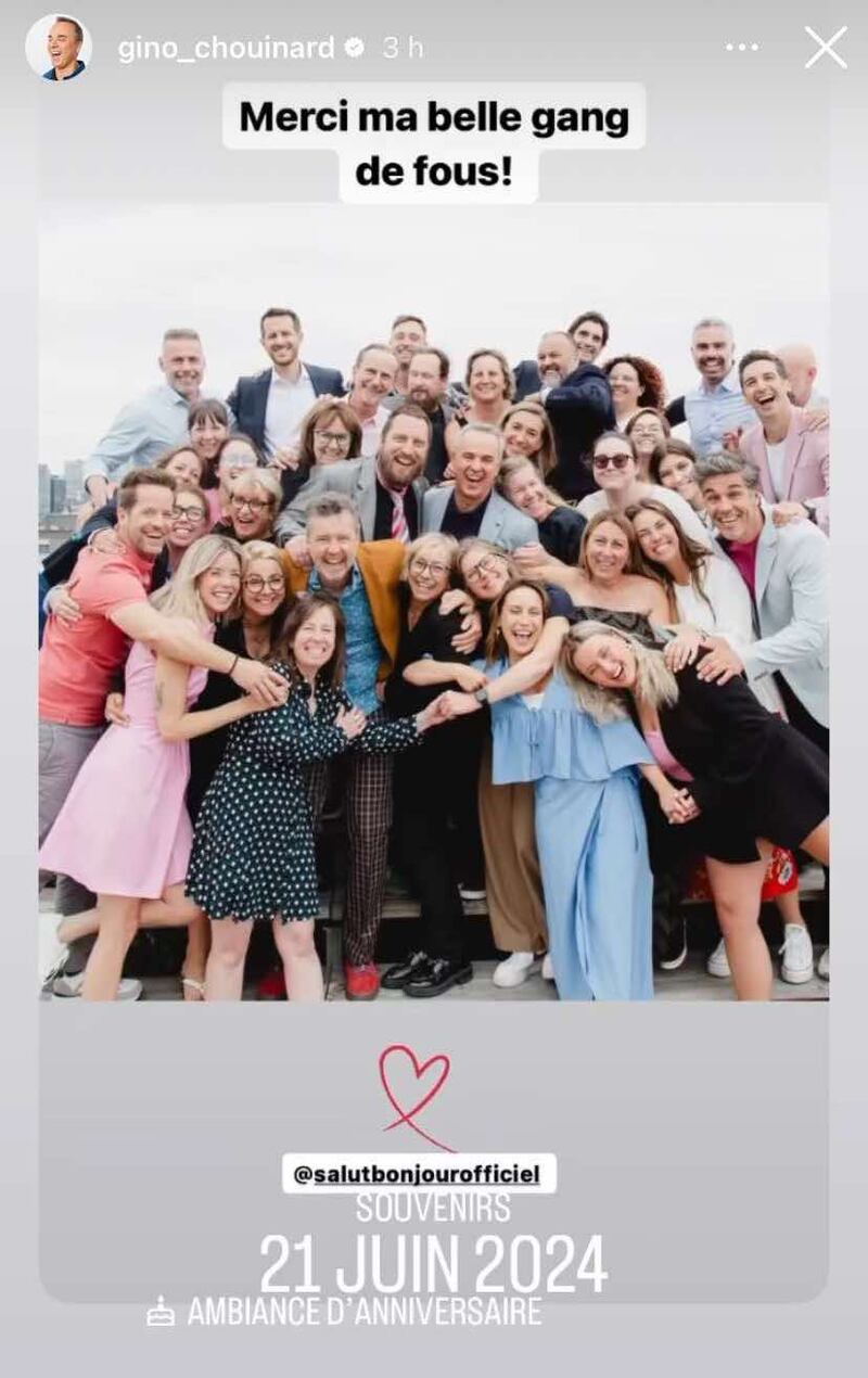 C'est que son téléphone lui a préparé un petit récapitulatif de la dernière année en photos. Et, vous l'aurez deviné, la majorité d'entre elles montrent Gino Chouinard entouré de ses anciens collègues de Salut Bonjour!