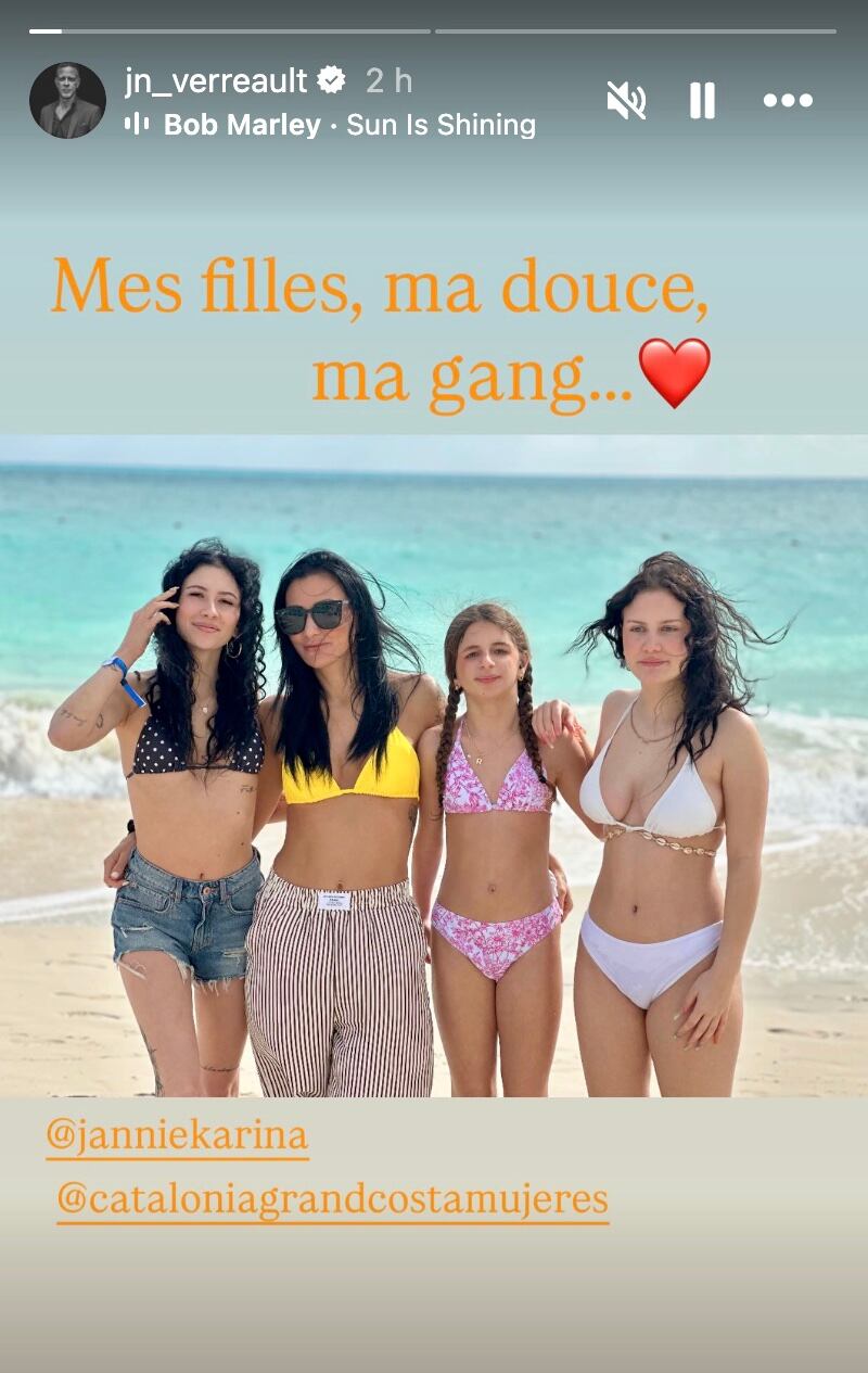 Avec l'image, Jean-Nicolas Verreault ajoute «Mes filles, ma douce, ma gang» avec un petit coeur. Voici la superbe photo ensoleillée: