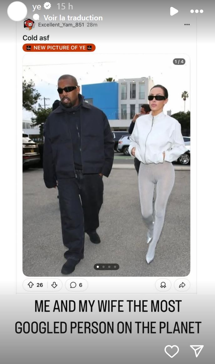 Le rappeur a également partagé sur Instagram des captures d’écran de Google Trends, montrant que Bianca Censori était l’un des sujets les plus recherchés à travers le monde. «Pour être clair, le 4 février 2025, ma femme est la personne la plus googlée sur la planète appelée Terre», a-t-il écrit.