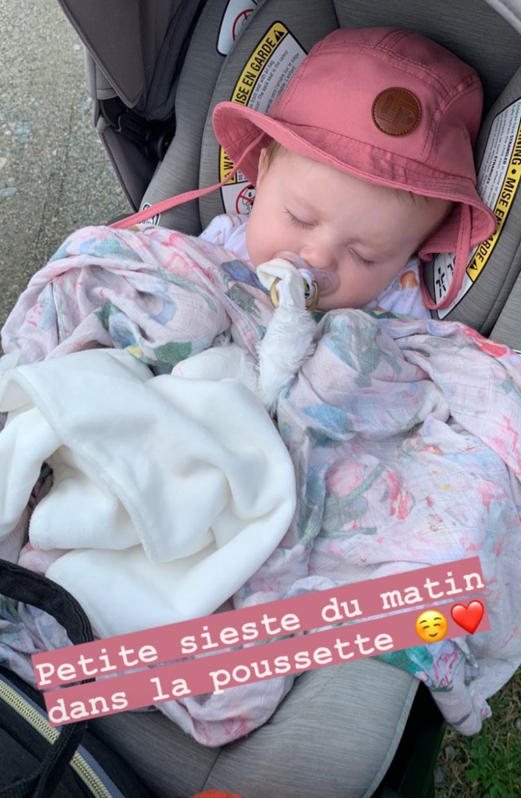 « Petite sieste du matin dans la poussette », a déclaré avec amour Clara Choquette.