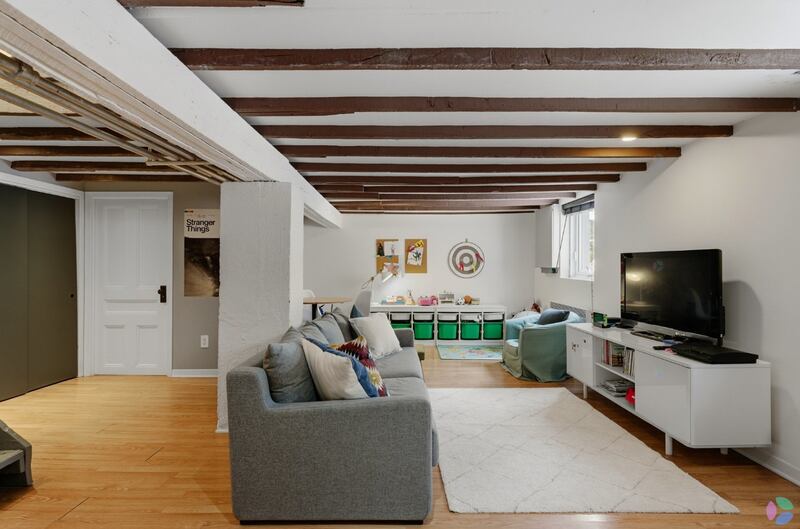 Au sous-sol, on peut profiter de la grande salle familiale qui permet aux enfants de s’amuser pendant que les adultes profitent de leur soirée au rez-de-chaussée.