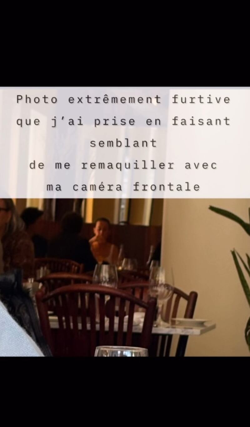 Pour avoir une preuve qu’elle ne dit pas des mensonges, Léa a subtilement pris une photo (un peu floue) de Katy assise au loin dans le restaurant.