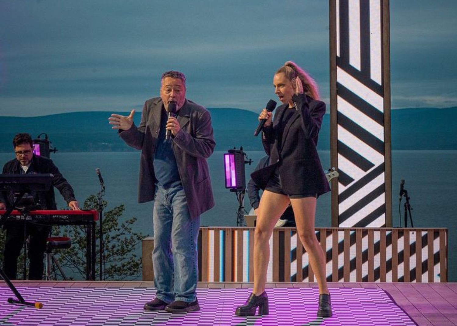 Avec son rouge à lèvres rouge vif et ses cheveux blonds vagués, la star québécoise est à couper le souffle.