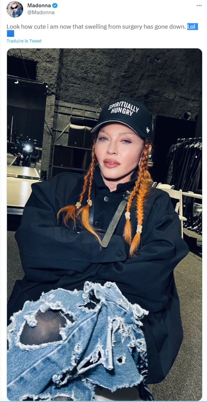 «Regardez comme je suis jolie maintenant que le gonflement dû à la chirurgie s'estompe Lol \ud83d\ude02», dévoile-t-elle, partageant au passage une photo d'elle arborant des cheveux tressés, un jean déchiré et une casquette de baseball.