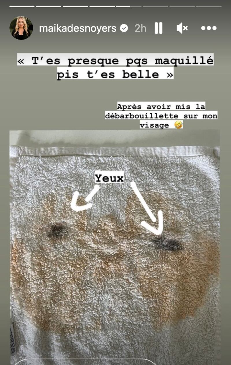 Avec ces photos, Maïka Desnoyers montre à ses abonnés qu'il est important de s'aimer tel que l'on est. Voici d'abord le selfie de l'agente immobillière avec son maquillage de tournage...