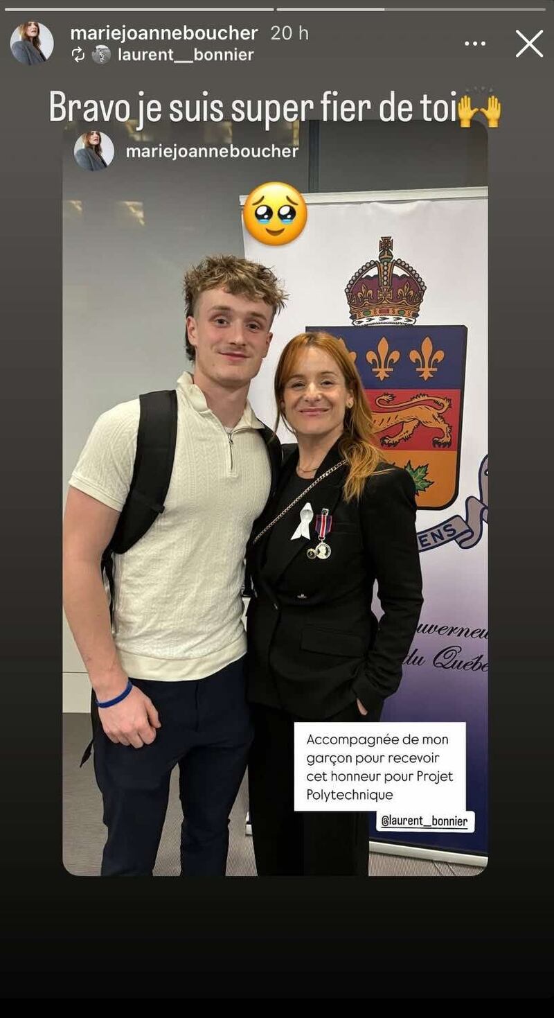 Pour recevoir ce prix précieux et mystérieux, Marie-Joanne Boucher était accompagnée de son fils aîné, Laurent. On voit rarement la comédienne avec sa famille.