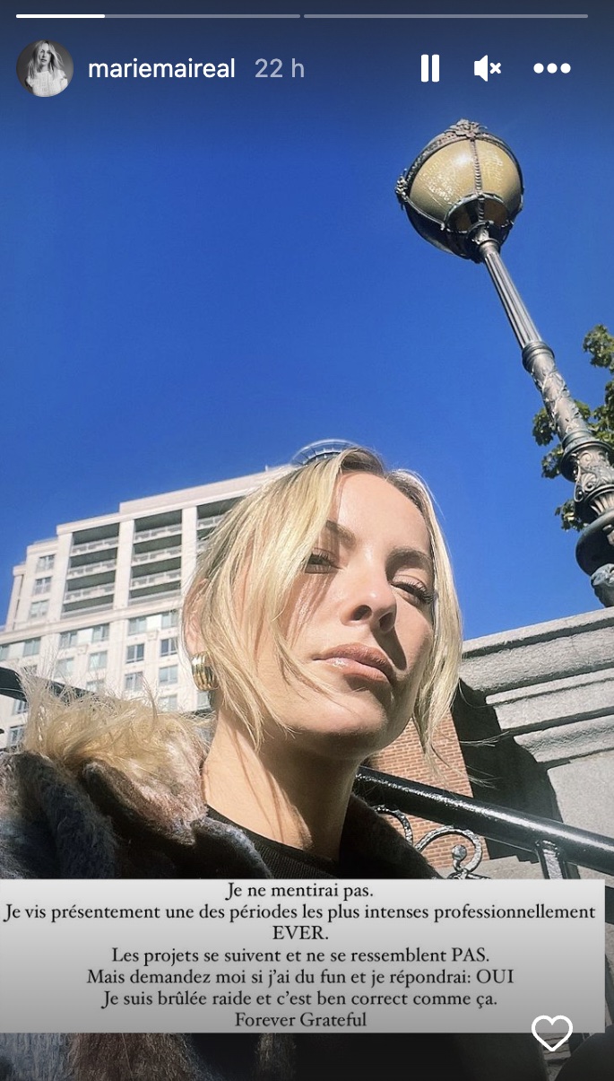Quelle attitude positive et saine. Marie-Mai sait reconnaître que tout va très vite ces jours-ci et qu'elle a besoin de repos, mais elle reste à la fois heureuse et remplie de gratitude!
